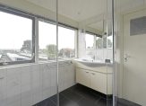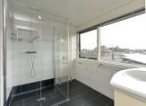 De badkamer is in 2018 vernieuwd en voorzien van een douchecabine, een wastafelmeubel en een handdoekradiator. Alles is keurig afgewerkt en praktisch ingericht.