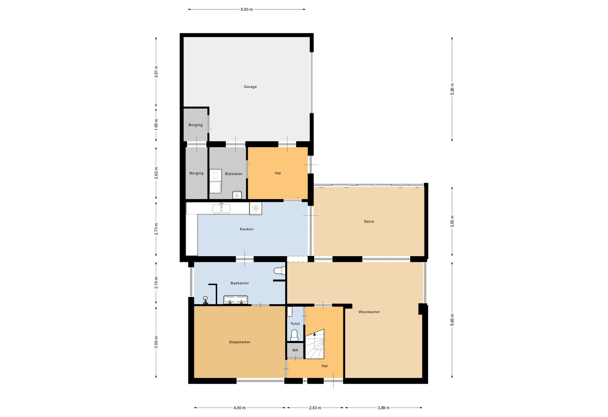 De indeling van de woning is als volgt