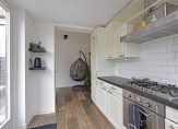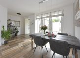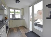 Je kijkt aan de voorzijde vrij de straat in, en aan de achterzijde heb je zicht op je eigen tuin, zonder inkijk van achterburen. De oorspronkelijke keukenruimte is nu ingericht als zitje, en loopt door in de uitbouw waar de keuken zich bevindt. Deze is opgesteld in een praktische L-vorm en voorzien van een gaskookplaat, afzuigkap, vaatwasser, close-in boiler, koelkast, vriezer en oven. Vanuit de keuken kijk je fijn uit op de tuin en loop je via een deur zo naar buiten.