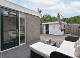 • Stenen berging met elektra, uitstortgootsteen en wasmachine-/drogeraansluiting