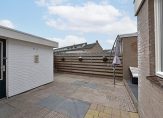 De achtertuin ligt gunstig op het zuiden en is circa 9,5 meter diep. De tuin is netjes aangelegd met bestrating en een schutting rondom met poort. Achter in de tuin staat een stenen berging met elektra, wateraansluiting en plek voor je wasmachine en droger. De royale garage die hier direct op aansluit is optioneel beschikbaar. Deze garage beschikt over een elektrische garagedeur en komt uit op het achtergelegen garageplein.