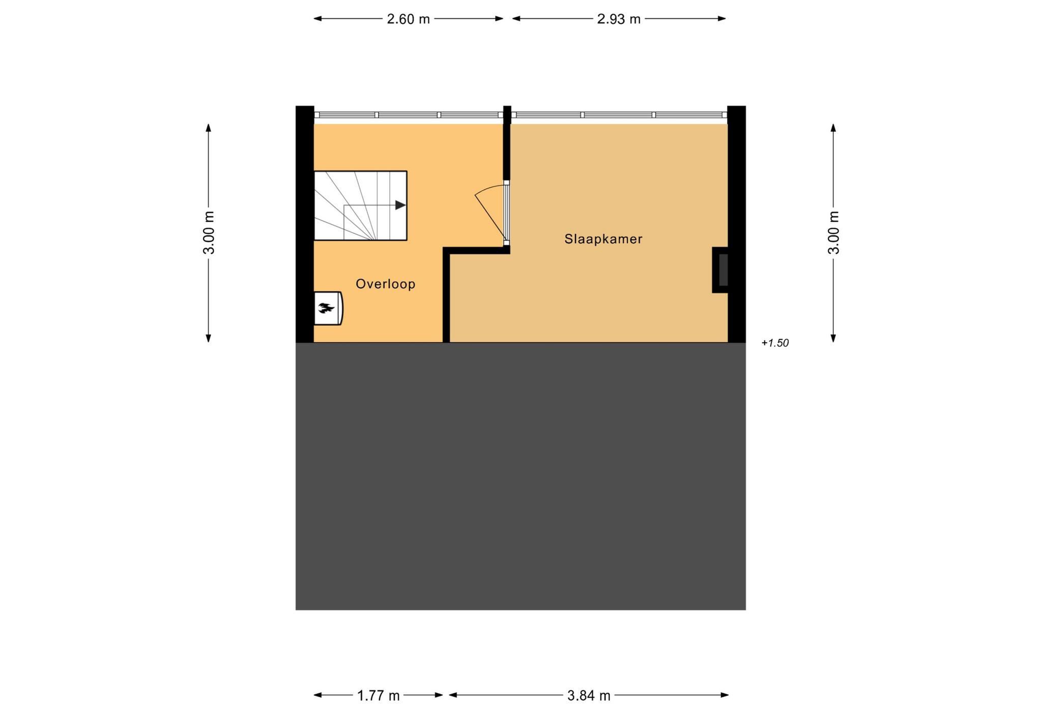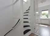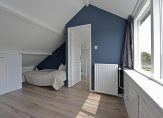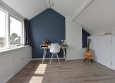Via de vaste trap kom je op de tweede verdieping. Op de overloop vind je de cv-ketel (Vaillant, oktober 2024 – voorbereid op hybride), de aansluiting voor je wasmachine en bergruimte achter de knieschotten. De zolderkamer is ruim, licht dankzij de ramen aan de achterzijde, en voorzien van extra bergruimte achter schuifpanelen.