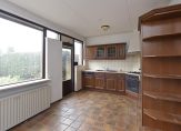 De keuken ligt aan de achterzijde en is afgesloten met een grote raampartij. Je vindt hier een keuken in L-opstelling met diverse inbouwapparatuur en een deur naar de achtertuin, die afsluitbaar is met een rolluik.