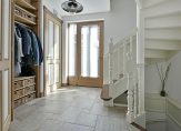Via de entree betreed je de ruime hal van de woning met de meterkast, trapopgang, trap naar de bergkelder, toilet met fonteintje en toegangsdeur naar de woonkamer.