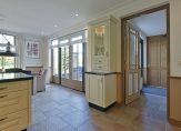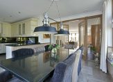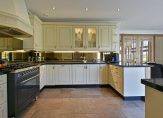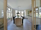 De keuken is eveneens royaal van formaat en uitgevoerd met een groot gasfornuis met oven, koel-vriescombinatie, dubbele wasbak, afzuigkap, vaatwasser en close-in boiler.