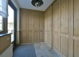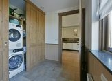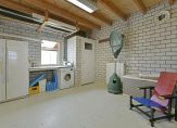 Aansluitend aan de keuken bereik je de bijkeuken. Deze is voorzien van inbouwkasten met volop opbergruimte. Hier is ruimte voor de garderobe en schoenen, een uitstortgootsteen, een extra koelkast, de wasmachine en droger en nog veel extra bergruimte.