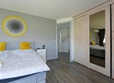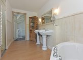 De royale badkamer bevindt zich ook aan de achterzijde en is uitgevoerd met een dubbele wastafel, grote inloopdouche en een riant hoekbad. Vanuit de badkamer heb je toegang tot het balkon.