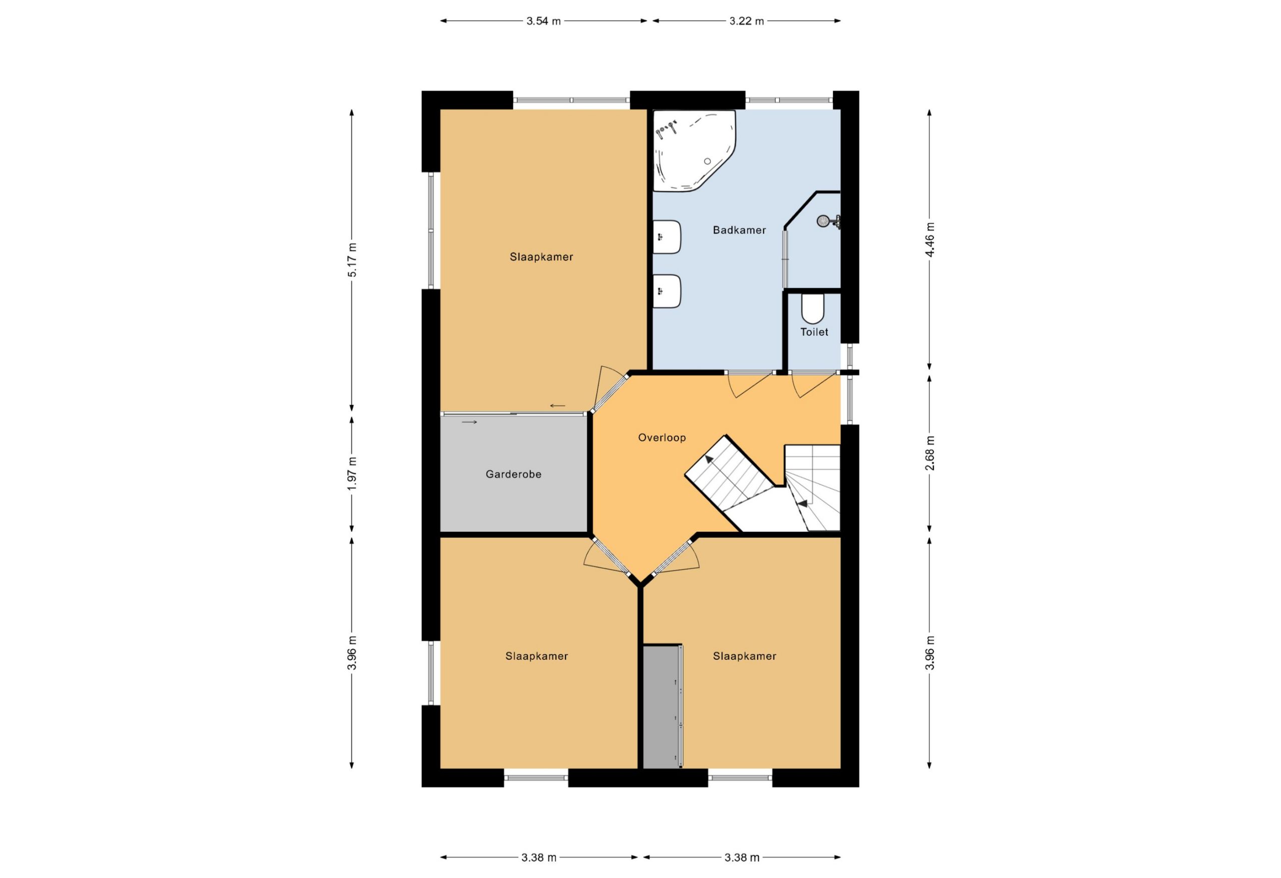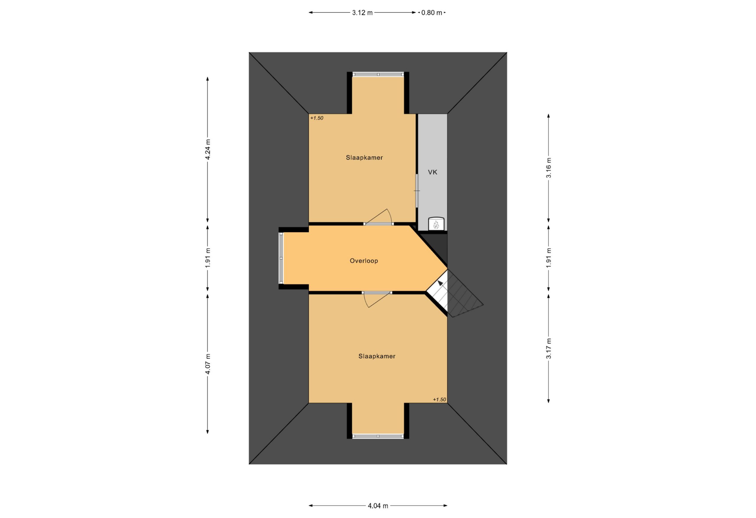 Met een vaste trap bereik je de riante overloop van de tweede verdieping. De grote overloop biedt voldoende ruimte voor bijvoorbeeld een kantoorplek. De 3 dakkapellen op deze verdieping zorgen voor een optimaal ruimtelijk gevoel.