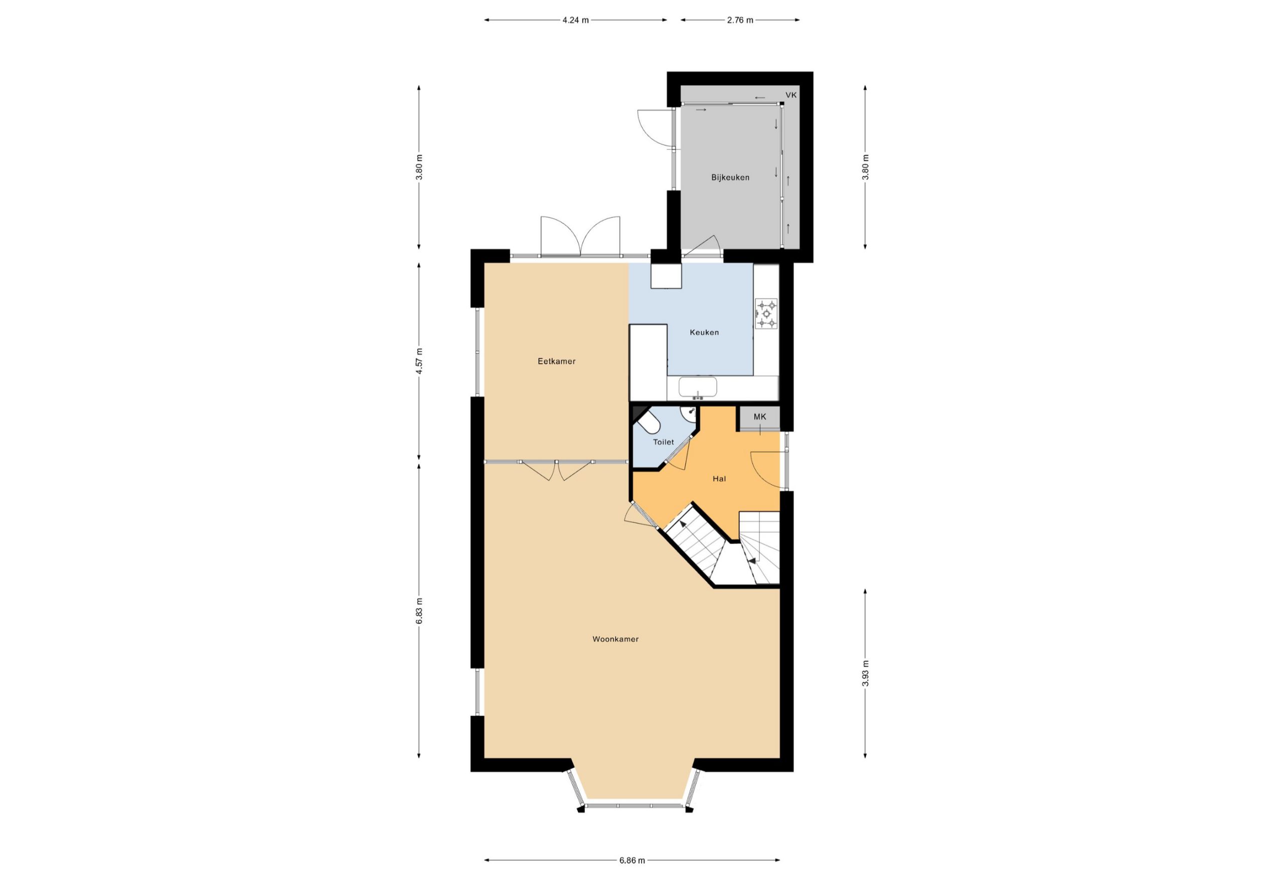 De gehele begane grond is voorzien van vloerverwarming. Vanuit de eethoek en bijkeuken heb je toegang tot de achtertuin.