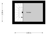 Vanuit de hal is er toegang naar de voorraadkelder. De kelder heeft stahoogte en diverse stellingen voor voorraad of opslag.