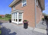 De garage is voorzien van een elektrische toegangsdeur. Naast de garage bevindt zich de toegangsdeur van het bijgebouw. Hier vind je de meterkast in de hal en een kantoor en aan de linkerzijde een voormalige kapsalon aan huis. Vanuit de kapsalon leidt een trap naar de ruime bergvliering met stahoogte en opstelplaats cv-ketel. Aan de achterzijde van het bijgebouw bevindt zich een hobbyruimte met een werkbank, extra toilet en opslag. Vanuit hier heb je toegang tot de overkapping aan de achterzijde. Deze overkapping is in 2023 geplaatst en volledig voorzien van glazen deuren, zodat je deze bij mooi weer open kunt zetten, maar ook bij een fris voorjaarszonnetje al comfortabel buiten kunt zitten. Aan de achterzijde ligt een leuk stuk groen (een zudde), waar zelfs al eens uilen zijn gespot!