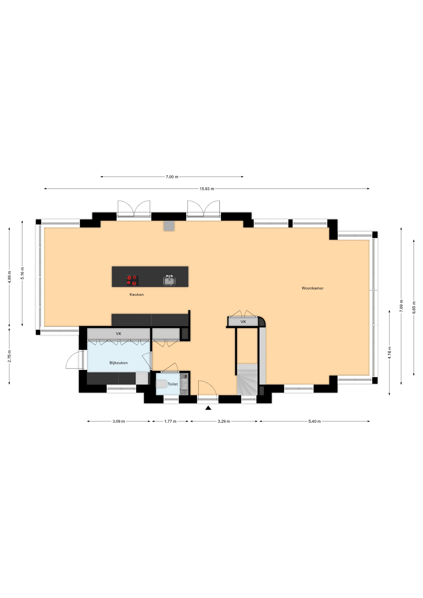De indeling van de woning is als volgt: