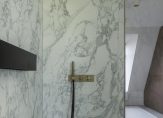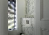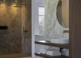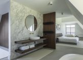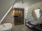 Eerste verdieping: Vanuit de entree kom je op de overloop die toegang geeft tot drie ruime slaapkamers. De master-bedroom beschikt over een eigen designbadkamer, geleverd en ontworpen door Sjartec badkamers met royale inloopdouche, dubbele wastafel en een vrijstaand bad van Cocoon.