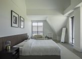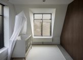 De huidige babykamer is verbonden met de master-bedroom en de badkamer, maar kan eenvoudig weer als aparte kamer worden ingericht. De verplaatsbare kastenwand is op maat gemaakt, en vanuit de overloop is een eigen toegang tot deze kamer.