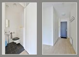 De entreehal geeft toegang tot alle ruimtes. Je vindt hier onder andere een modern toilet met fonteintje en een handige inpandige berging met cv-ketel en mechanische ventilatie (voor de afzuiging van toilet, badkamer en keuken).