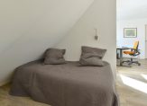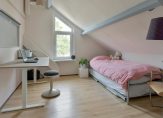 Riante overloop met veel bergruimte, vernieuwd dakraam en opstelplaats voor de Remeha HR CV-ketel. Daarnaast vind je hier een vierde slaapkamer met opbergruimte achter de knieschotten en een raam in de zijgevel.
