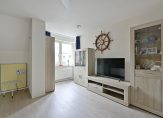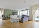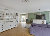 De woonkamer, aan de achterzijde, is dankzij de grote ramen heerlijk licht en biedt toegang tot de zij- en achtertuin.
