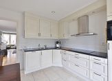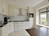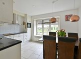 De keuken, aan de voorkant van het huis, biedt een mooi uitzicht op het groen en water. Deze keuken is voorzien van alle benodigde inbouwapparatuur en een composiet werkblad. De eethoek in de keuken is gescheiden van de woonkamer door een tussenmuur, maar deze kan indien gewenst worden verwijderd voor een open gevoel.