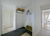 De woning begroet ons met een ruime hal, compleet met een vaste kast, een nette toiletruimte, garderobe, en toegang tot de garage en woonkamer. De garage, bereikbaar vanuit zowel de voor- als achtertuin en de woning, is uitgerust met moderne voorzieningen zoals een elektrische deur, verwarming, water, en isolatie.
