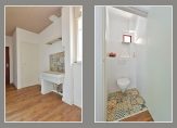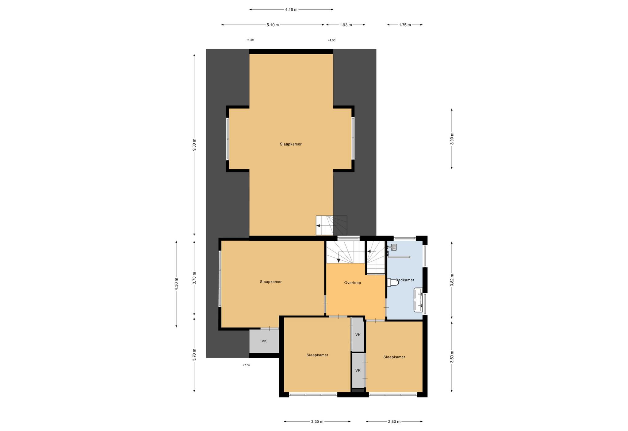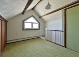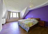 Via de bijkeuken bereik je nog een aparte ruimte op de eerste verdieping: een zeer royale vierde kamer, met aan beide zijden grote dakkapellen en veel bergruimte achter de knieschotten. Deze ruimte is multifunctioneel: gebruik ‘m als extra slaapkamer, thuiskantoor, praktijkruimte of zelfs als zelfstandige woonruimte. Er kan eenvoudig een aparte entree worden gerealiseerd via de garage of bijkeuken.