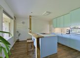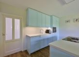 De landelijke open woonkeuken is een fijne plek in huis, met volop licht en uitzicht op de tuin. Via de loopdeur loop je zo het onderheide terras op. De keuken is voorzien van moderne inbouwapparatuur: een inductiekookplaat met geïntegreerde afzuiging, Quooker, combimagnetron, grote koelkast, vriezer en vaatwasser.