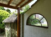 Een mooi detail: in de veranda is een waterreservoir geplaatst dat regenwater opvangt via de hemelwaterafvoer — perfect om je tuin op een duurzame manier te sproeien.