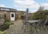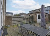 Aan de achterzijde van de woning ligt de tuin van ruim 10 meter diep gelegen op het zuid(oosten). In de achtertuin staat een stenen berging met elektra en aan de achterzijde staat een schutting met een toegangsdeur. Er staat ook een praktische overkapping om de bakken onder op te bergen. De tuin aan de voorzijde is ook van een prima formaat en biedt mogelijkheden voor een zitje.