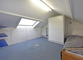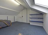 De zolder is te bereiken met een vaste trap. Op de overloop is hier de opstelplaats van de cv-ketel en een opstelling voor de droger. Tevens vinden we hier een 4e slaapkamer met bergruimte achter de knieschotten. Deze verdieping is niet erg hoog en wordt daarom ook niet meegerekend als woonoppervlakte. Door het plaatsen van een nokverhoging kun je hier wellicht twee ruime slaapkamers realiseren. Kijk voor de mogelijkheden en vergunningen op de website van de gemeente Nieuwkoop.