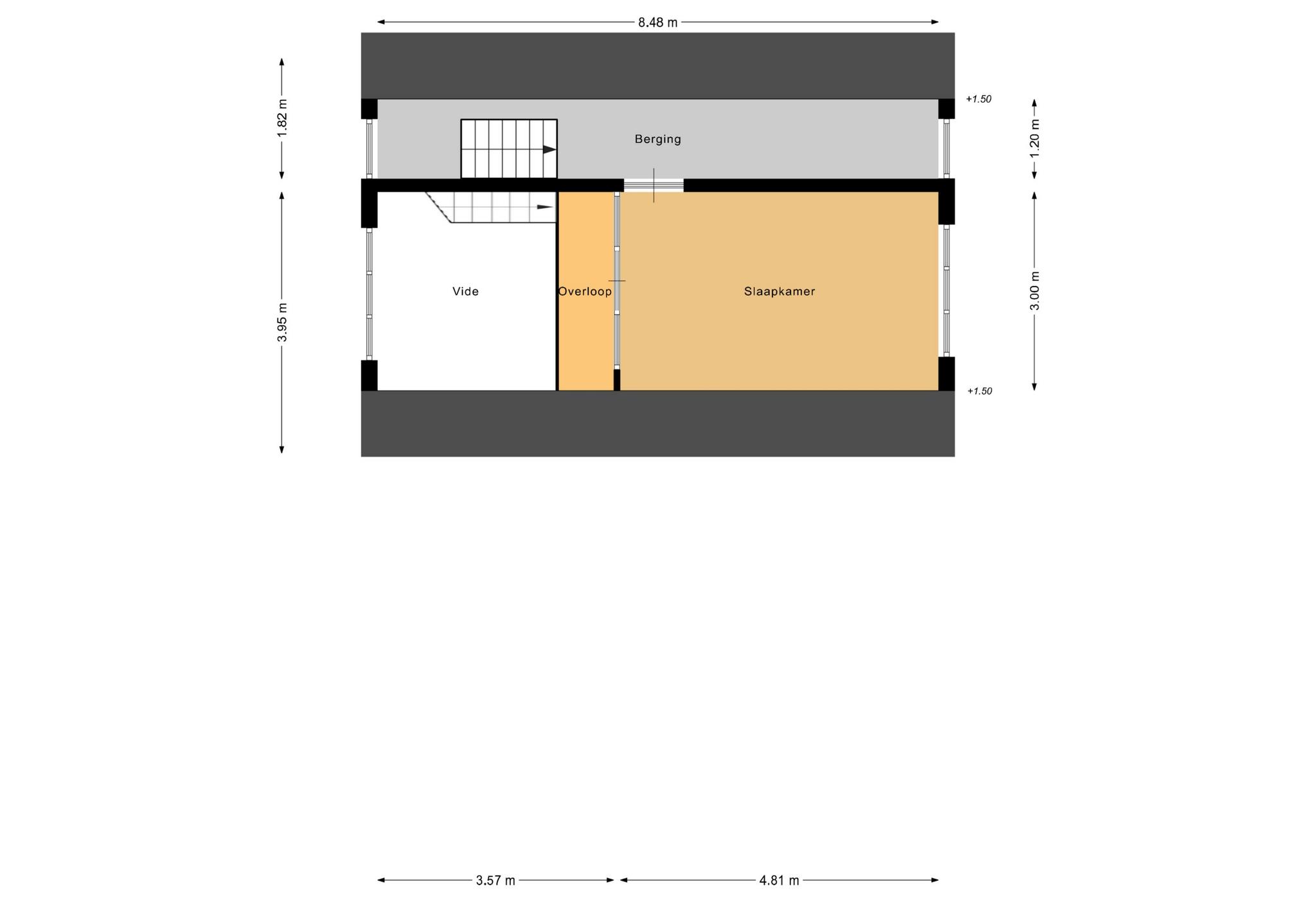 Vanuit de bovenste woonkamer leidt een trap naar de vide. Hier kom je op een voorzolder met aansluitend een bijzonder ruime slaapkamer. Je hebt er prachtig uitzicht over de Leidsevaart richting Rijnsaterwoude en Leimuiden, én over je eigen tuin aan de andere zijde.