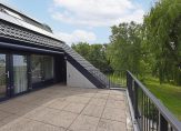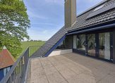 Via openslaande deuren in de woonkamer kom je op het royaal gelegen dakterras. Een heerlijke beschutte plek op het zuidwesten, met veel zon en privacy. Er is een kleine berging en een afsluitbaar zijpad dat je toegang geeft tot het dakterras vanaf de voorkant van de woning – ideaal, want zo hoef je niet met potten en meubilair door de woonkamer.
