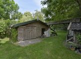 Het houthok biedt een flinke voorraad hout voor de houtkachel. En dan is er nog het tweede tuinhuis met aansluitingen voor water en elektra. Dit kun je deels gebruiken als atelier of kantoor, en deels voor tuinopslag.