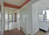 Vanuit deze woonkamer heb je toegang tot de achtertuin, maar ook tot een hal met de opstelruimte van de CV-ketel (Intergas 2024), een ruime kamer met werkblad en aansluitingen voor wasmachine en droger (deze kamer kan ook aangewend worden als slaapkamer), een slaapkamer met deur naar een heerlijk beschut platje en de achtertuin, en de royale ouderslaapkamer. Deze beschikt over een eigen deur naar het platje en de tuin én directe toegang tot de ruime badkamer met een royaal ligbad met watermassage, een wastafelmeubel en toilet (ook bereikbaar vanuit de hal).