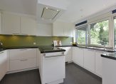 De keuken, geplaatst in 2016, is ruim van opzet en van alle gemakken voorzien: oven, combimagnetron, inductiekookplaat, ingebouwde afzuigkap, vaatwasser, koel-/vriescombinatie en dubbele gootsteen met close-in boiler. Vanuit de keuken kijk je prachtig uit op de tuin.