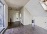 De overloop staat in open verbinding met een ruime hobby-/slaapkamer, die nu als tv- en muziekkamer in gebruik is. Deze ruimte grenst aan het dakterras en de badkamer (circa 10 jaar geleden vernieuwd) met een douche, toilet en een wastafelmeubel.