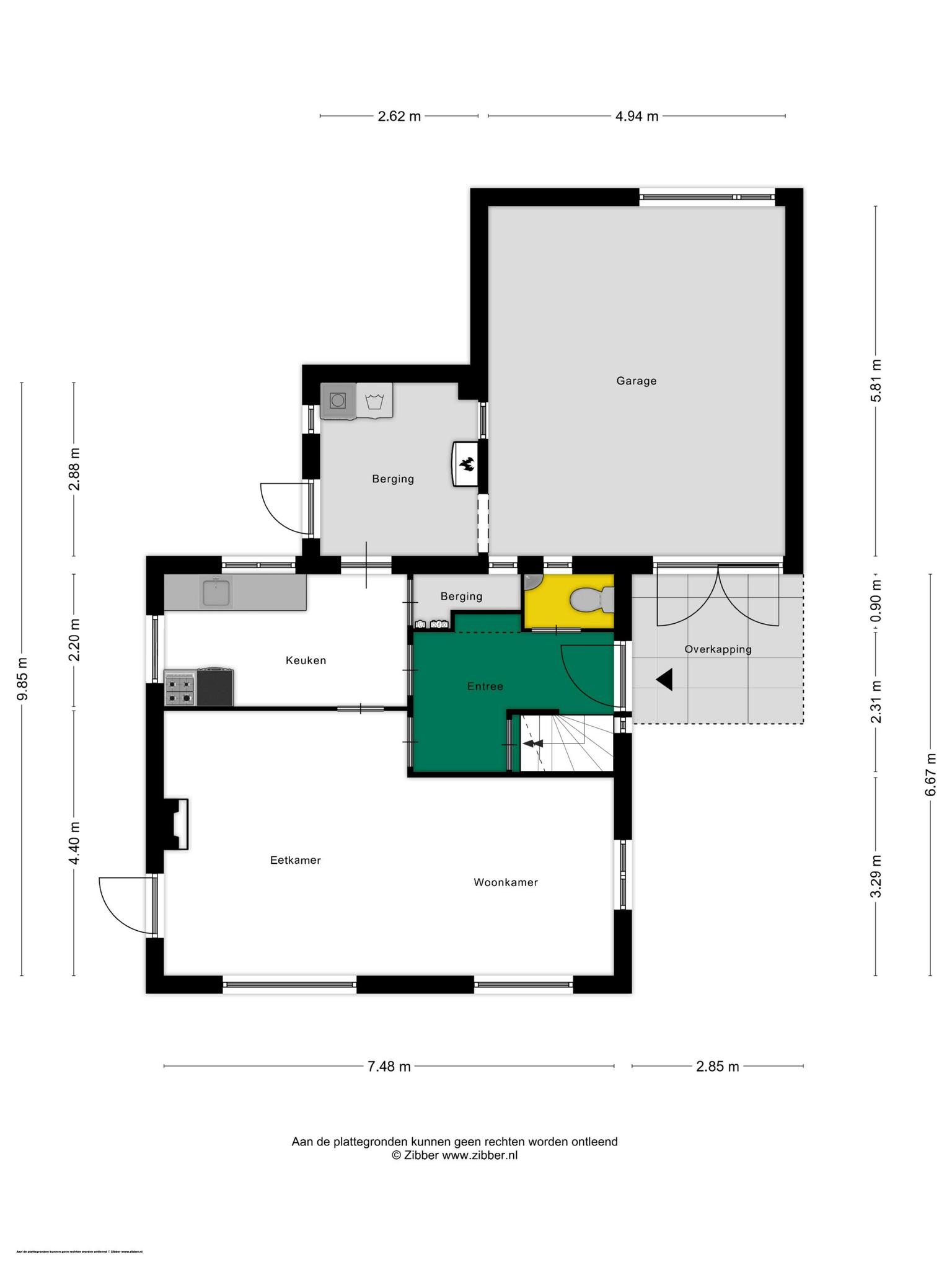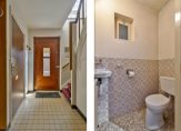 Aan de rechterzijde, bij de oprit, is de overdekte entree van deze vrijstaande woning. In de hal zie je direct dat dit een huis met klassieke elementen is. Voorbeelden hiervan zijn de tegelvloer, trapopgang en de lambrisering. Rechts in de hal zijn een garderobenis en de ruime toiletruimte met fonteintje. Achter een van de andere deuren is een trap naar de provisiekelder.