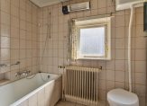 De badkamer is ingedeeld met een ligbad/douche, een wastafel en een toilet.