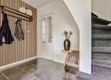 Via de entree bereikt u de grote hal van deze instapklare woning. De hal is voorzien van de meterkast en de trapopgang naar de 1e verdieping. Vanuit de hal krijgt u toegang tot een toiletruimte en de woonkamer. De ruime woonkamer is licht en prettig ingedeeld, met een gashaard met schouw als blikvanger. Aan de achterzijde van de woonkamer zorgt de grote schuifpui voor veel daglicht en een fijne verbinding met buiten. Halverwege de woonkamer krijgt u toegang tot de half open keuken met diverse inbouwapparatuur, zoals een Quooker kraan, gaskookplaat, afzuigkap, vaatwasser, koelkast, magnetron en een oven. De woonkamer en de keuken zijn voorzien van vloerverwarming. Aangrenzend aan de keuken bevindt zich een praktische bijkeuken met vaste kastenwand. Hierin bevinden zich de aansluitingen voor de wasapparatuur en de opstelplaats voor de cv-ketel (Remeha, 2025). Vanuit de bijkeuken bereikt u eveneens de achtertuin.