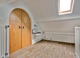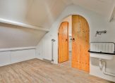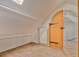 De royale voorzolder beschikt over voldoende bergruimte en is voorzien van een uitstortgootsteen met kraan. Via grote, speelse deuren is de vierde slaapkamer bereikbaar. Deze slaapkamer is circa 4,20 x 3,51 meter en beschikt over een dakraam.