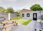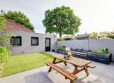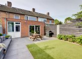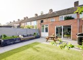 De achtertuin is verzorgd en praktisch ingericht, met kunstgazon, sierbestrating en diverse beplanting. Achterin de tuin bevindt zich een ruime, in spouw gebouwde berging van circa 17 m²: ideaal voor fietsen, gereedschap of als hobbyruimte. Dankzij de achterom via de berging is de tuin bovendien goed bereikbaar.