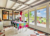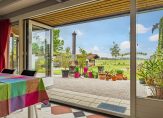 Aan leefruimte is geen gebrek, want de tuingerichte serre is een volwaardige leefruimte. Een driedelige harmonicapui zorgt voor een optimale verbinding met het terras.