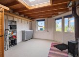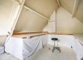 Een vaste trap geeft toegang tot de zolder, die een nokhoogte van meer dan 2.80 meter. Deze zolder, jarenlang gebruikt als hobbyruimte, biedt de mogelijkheid om een extra slaapkamer te realiseren.