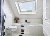 Ruimte is er niet alleen beneden, maar ook boven. Vanaf de overloop zijn drie slaapkamers te bereiken, waarvan twee met een dakkapel. Beide kamers zijn in te richten als tweepersoonskamer, terwijl de derde slaapkamer een prima kinderkamer, werkkamer of hobbyruimte is. De badkamer, met een groot dakraam, is ingedeeld met een ligbad, aparte douche, toilet en een wastafelmeubel.