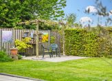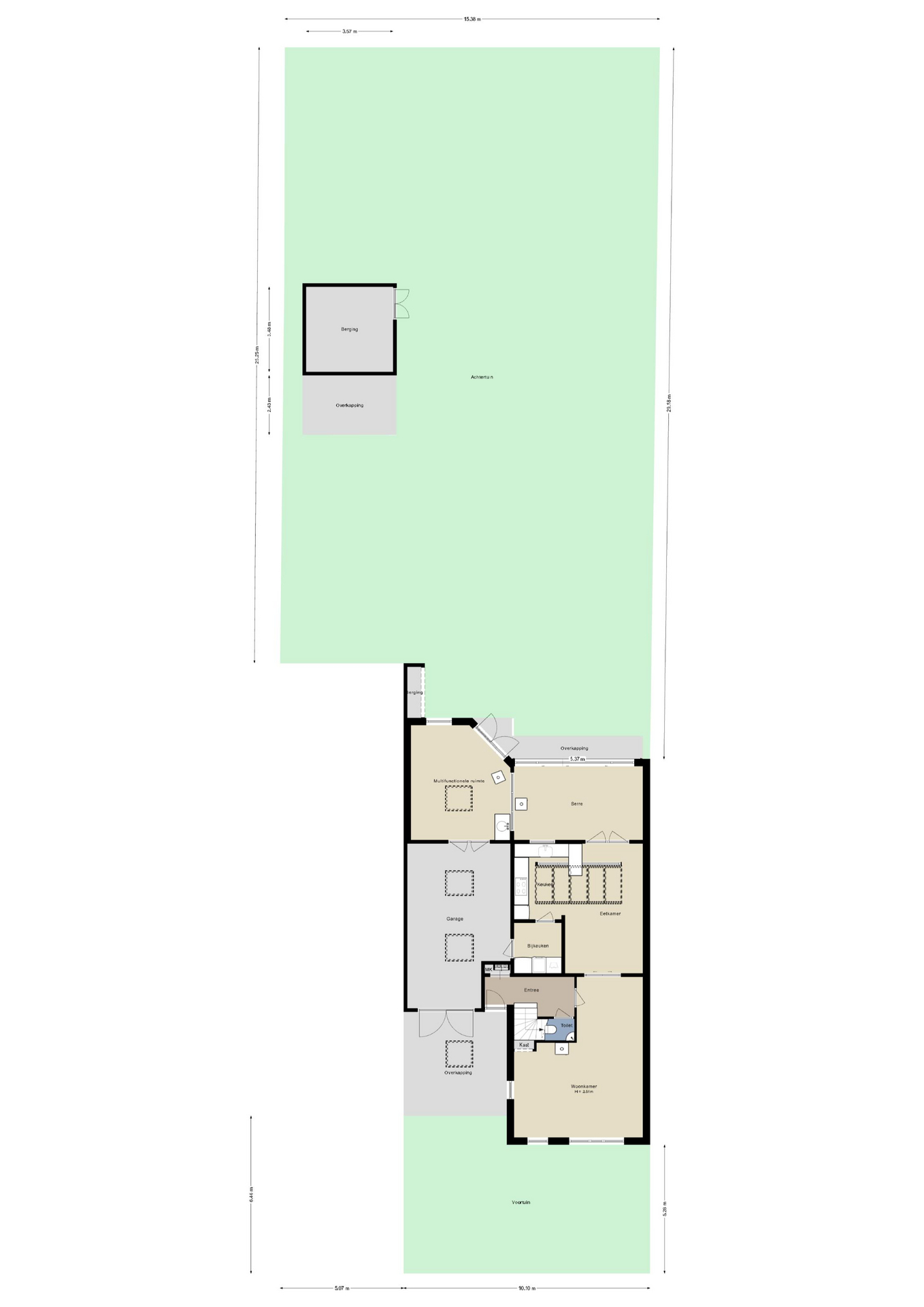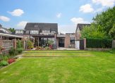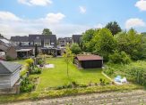 Aan de voorzijde zie je een keurig onderhouden tuin met groen en de oprit met carport, waardoor er twee auto’s op eigen terrein kunnen staan. Verrassend is de grootte van de achtertuin, met een vrije ligging aan de achterzijde en een uitstekende zonligging. Er zijn meerdere terrassen, mooi aangelegde borders, een heerlijk (speel)gazon en een geïsoleerde schuur met houtopslag.