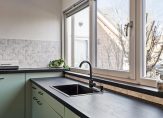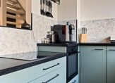 In de hal is toegang tot de meterkast, moderne toiletruimte met wandcloset en fontein, inpandige berging en is er toegang tot de woonkamer. Aan de voorzijde is de open keuken met nette keukeninrichting in U-opstelling en is voorzien van een nieuw werkblad, inductie kookplaat (2022), afzuigkap, oven (2024) en losse vaatwasser. De woonkamer is gelegen aan de achterzijde van de woning, dit is een fijne en lichte ruimte met leuk zicht op de achtertuin. De gehele begane grond (m.u.v. de berging) is voorzien van een mooie en moderne visgraat pvc vloer.