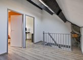 Op de eerste verdieping zijn een overloop, 2 slaapkamers (voorheen 3 slaapkamers) en de badkamer. De slaapkamers zijn voorzien van vinyl vloeren en strak gestukadoorde muren. De slaapkamers aan de achterzijde zijn samengevoegd waardoor er nu een slaapkamer met inloopkast aanwezig is. De moderne en luxe badkamer is voorzien van een ruime inloopdouche, wandcloset, wastafelmeubel met dubbele kraan en designradiator.