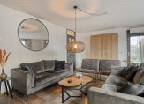 De hal geeft toegang tot alle vertrekken. In de hal is tevens toegang tot de meterkast en berging met opstelling cvketel, mechanische ventilatie unit en witgoedaansluitingen. Aan het einde van de hal is er toegang tot de woonkamer, deze ruime (circa 32 m²) leefruimte biedt voldoende ruimte voor een zit- en eetgedeelte. Door de grote raampartijen is er veel lichtinval. Er is vanuit de woonkamer toegang tot een terras gelegen op het zuiden en geeft een vrij uitzicht over de omgeving. De keuken staat in open verbinding met de woonkamer en is voorzien van een keukeninrichting met gaskookplaat, afzuigkap en vaatwasser Vanuit de hal is er verder toegang tot twee slaapkamers, de badkamer en het toilet. De slaapkamers zijn respectievelijk 13,5 m² en 6,5 m² groot en voorzien van nette laminaatvloeren. De moderne badkamer is voorzien van een bad met douchescherm, wastafelmeubel en designradiator. De separate moderne toiletruimte is voorzien van wandcloset en fontein.