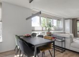 De hal geeft toegang tot alle vertrekken. In de hal is tevens toegang tot de vernieuwde meterkast en berging met opstelling Remeha combiketel uit 2011, mechanische ventilatie unit en witgoedaansluitingen. Aan het einde van de hal is er toegang tot de woonkamer, deze ruime (circa 32 m²) leefruimte biedt voldoende ruimte voor een zit- en eetgedeelte. Door de grote raampartijen is er veel lichtinval en deze ramen zijn voorzien van elektrische screens. Er is vanuit de woonkamer toegang tot een balkon gelegen op het zuiden voorzien van houten vlonders en geeft een vrij uitzicht over de omgeving. De keuken staat in open verbinding met de woonkamer en is in 2022 voorzien van een moderne keukeninrichting met inductie kookplaat, afzuigkap, combi oven/magnetron, koelkast en vrieskast. Tevens ligt er in het gehele appartement een keurige laminaatvloer. Vanuit de hal is er verder toegang tot twee slaapkamers, de badkamer en het toilet. De slaapkamers zijn respectievelijk 13,5 m² en 6,5 m² groot en voorzien van nette laminaatvloeren en de grootste kamer beschikt over een rolluik. De moderne en luxe badkamer uit 2023 is voorzien van een ruime douche met regendouche, wastafelmeubel en designradiator. De separate moderne toiletruimte uit 2023 is voorzien van wandcloset en fontein.