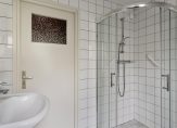 Op de eerste verdieping is er via de overloop toegang tot 3 slaapkamers, de badkamer en wasruimte. De twee grootste slaapkamers hebben vaste kasten. De geheel betegelde badkamer is voorzien van een douche, toilet en wastafel.
