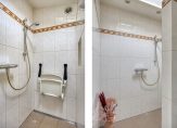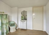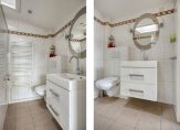Op de eerste verdieping bevinden zich vier slaapkamers en een badkamer. Deze badkamer is uitgevoerd met een inloopdouche, wandcloset en wastafel met meubel. Een koepel, die ook te openen is, zorgt voor daglicht in de badkamer. De slaapkamers hebben laminaatvloeren. Vanuit een kast is een vliering bereikbaar, waarop de nodige bergruimte is.