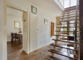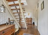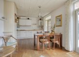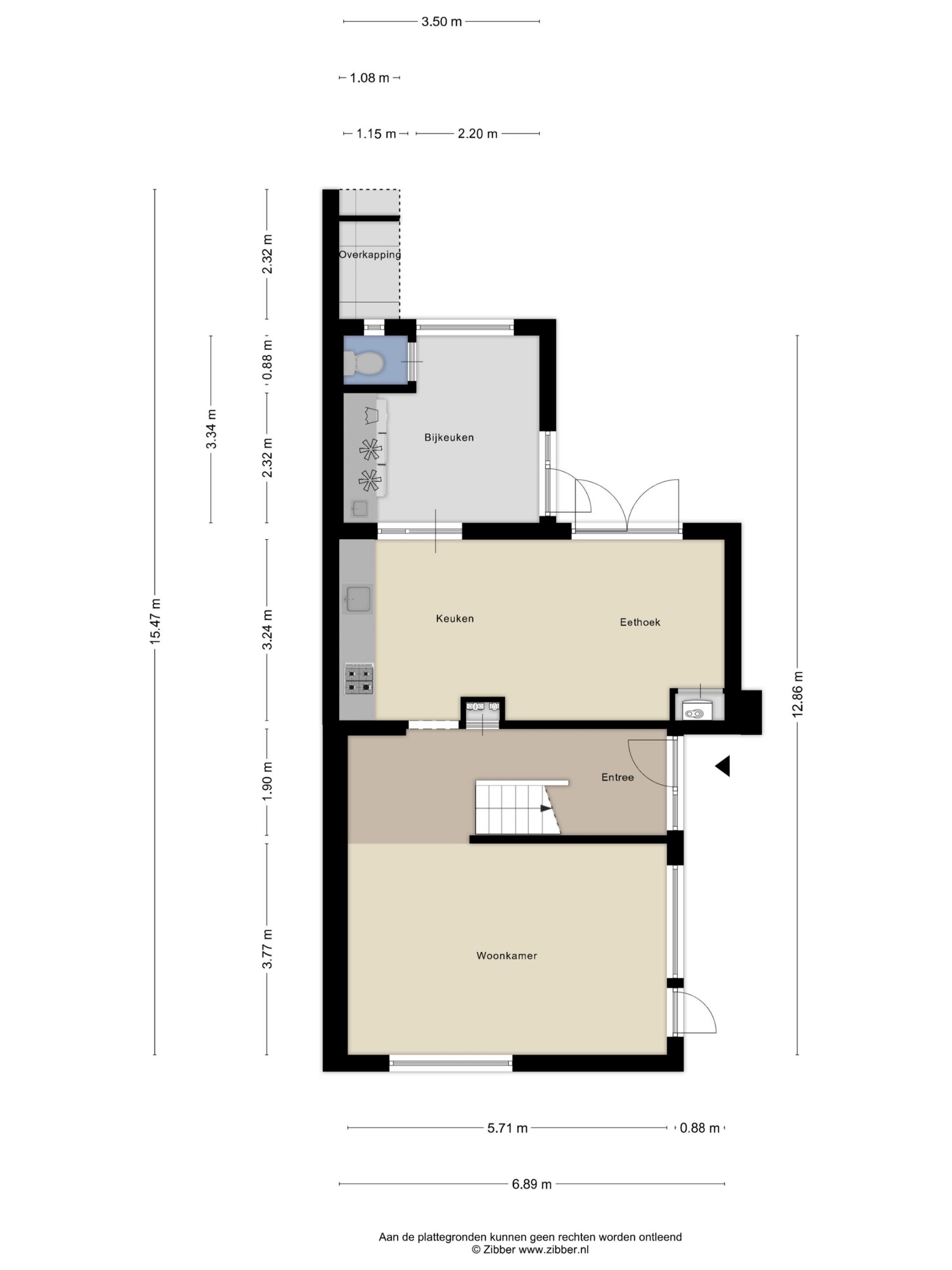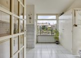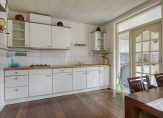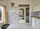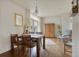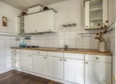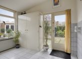 De entree van de woning ligt aan de zijkant van de woning. Hier is een ruime hal met mooie open trap naar de verdieping. Aan de voorzijde van de woning is de woonkamer, welke beschikt over een groot zijraam. Er ligt een fraaie eikenhouten vloer in de woonkamer, die doorloopt in de woonkeuken. Hier zijn openslaande tuindeuren en een rechte keukenopstelling met gaskookplaat. In de keuken is ook een cv.-kast met de Nefit combiketel uit 2020. Achter de keuken is een praktische bijkeuken aangebouwd met ruimte voor het witgoed. Ook de toiletruimte is hier. Vanuit de bijkeuken is direct toegang tot de tuin, waardoor deze ruimte ook dient als binnenkomst van de woning als je achterom komt.